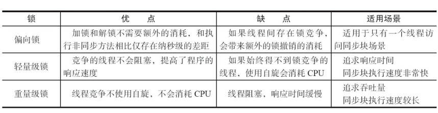 Java SE 1.6为了减少获得锁和释放锁带来的性能消耗,引入了“偏向锁”和“轻量级锁”,在