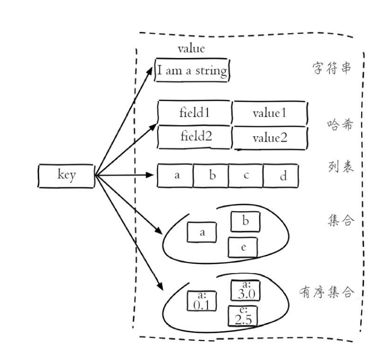 - hashtable(哈希表) : 当集合类型无法满足intset的条件时, Redis会使 用hashtable作为集合的内部实现。