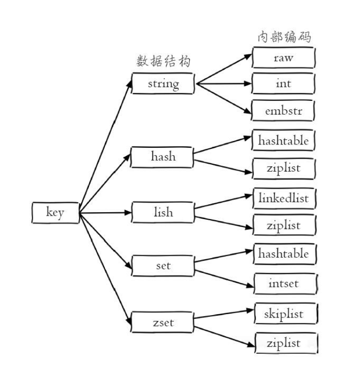 - linkedlist(链表) : 当列表类型无法满足ziplist的条件时, Redis会使用 linkedlist作为列表的内部实现。