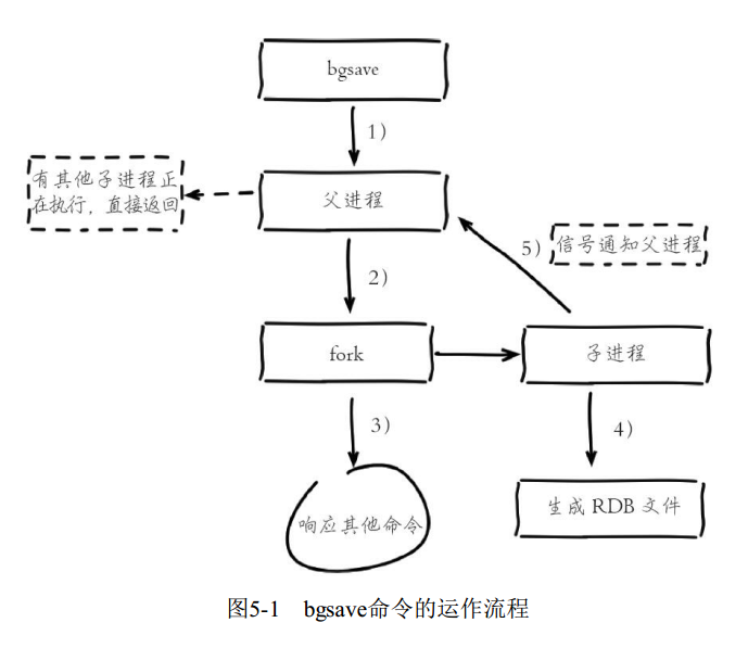 1) 执行bgsave命令, Redis父进程判断当前是否存在正在执行的子进程, 如RDB/AOF子进程, 如果存在bgsave命令直接返回。