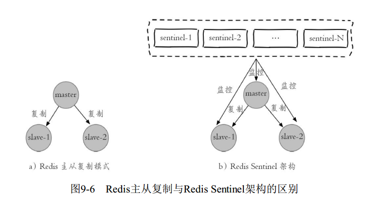 Redis Sentinel与Redis主从复制模式只是多了若干Sentinel节点, 所以Redis Sentinel并没有针对Redis节点做了特殊处理
