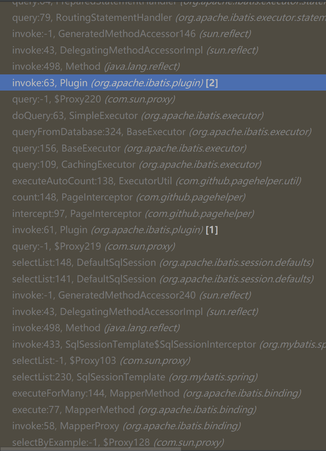 多了 事务、SqlSessionTemplate、分页插件、以及最后在StatementHandler自定义同步拦截插件 四个代理