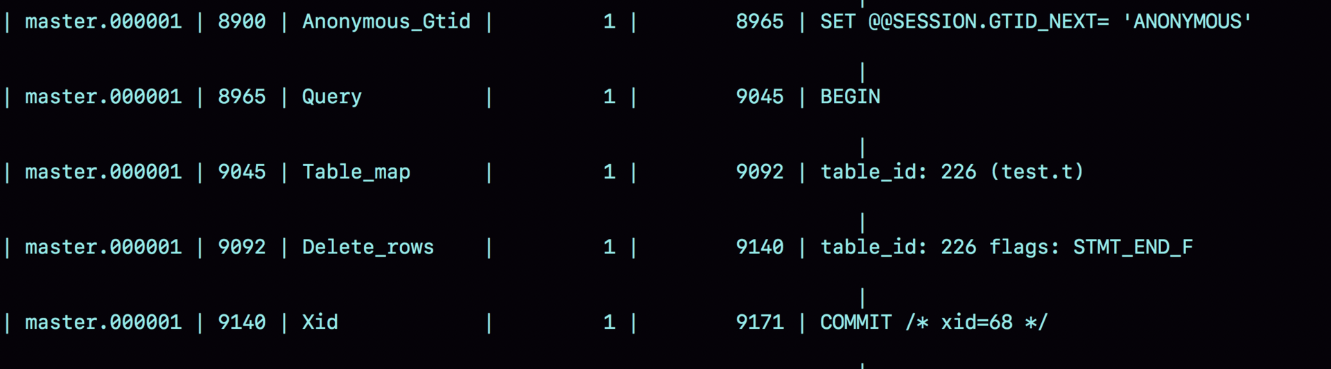 mysqlbinlog -vv data/master.000001 --start-position=8900;